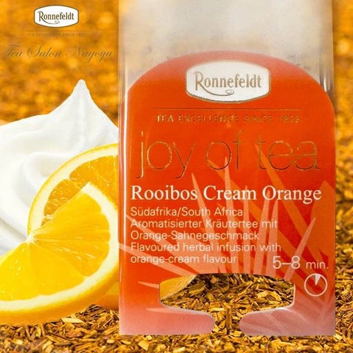 ルイボスにフルーティーなオレンジピールとやさしく甘いバニラの香りをブレンド。