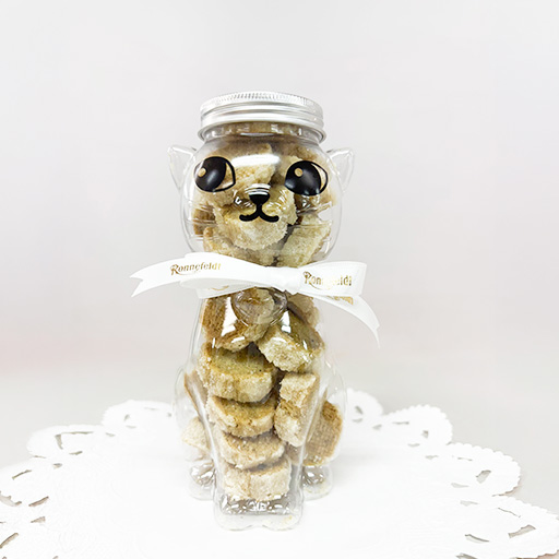 サロン自慢のアールグレイクッキーをたっぷり30枚、可愛いにゃんボトルに入れてお届けいたします。