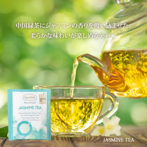 高品質の中国緑茶にジャスミンの花の香りをつけました。やわらかな味が特徴です。