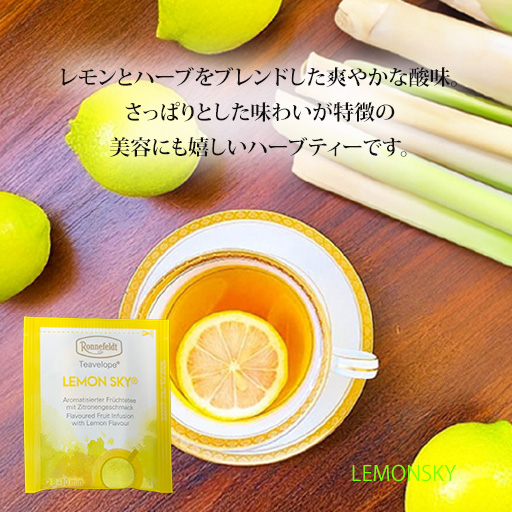 さっぱりとした味わいが特徴のハーブとフルーツをブレンド。レモンの香りが爽やかなティー。