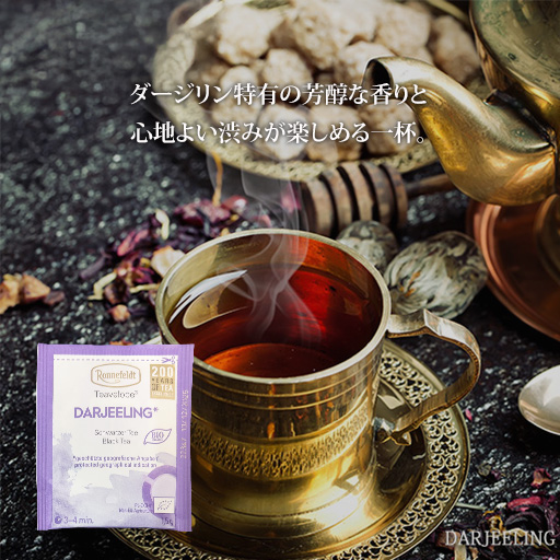 ダージリン特有の爽やかな渋みと繊細な香りが楽しめます。ファーストフラッシュ・セカンドフラッシュ・オータムナルをバランスよくブレンドし、目印であるシルバーチップも含まれています。