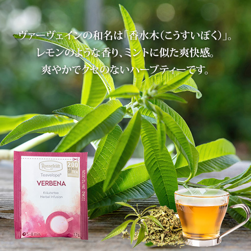 爽やかでクセのない香りのハーブ。草の自然な風味で、ヴァーヴェインの精油を含む珍しいハーブティー。